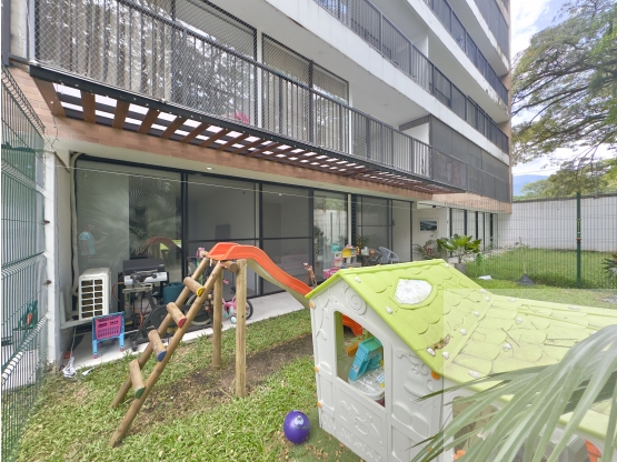 Lindo apto en 1 piso, patio trasero privado, Cuarto de Legua, Sur central de Cali. Área 100 m2 construidos más 70 de m2 de patio zona común de uso exclusivo, verde y privado. Total 170 m2 privados. Cuenta con 3 alcobas con closet, principal con baño y acceso al patio. 1 baño de alcobas, cocina integral abierta tipo americano, zona de lavandería y aseo. Sala comedor integrado al patio. Lindos acabados, apto fresco, bien ubicado. Cuenta con 1 parqueadero doble en línea en sótano, ascensor hasta el sótano, 1 depósito. El edificio cuenta con portería tipo lobby, parqueaderos de visitantes, zonas comunes, piscina grandes y pequeños en remodelación. Cita previa.